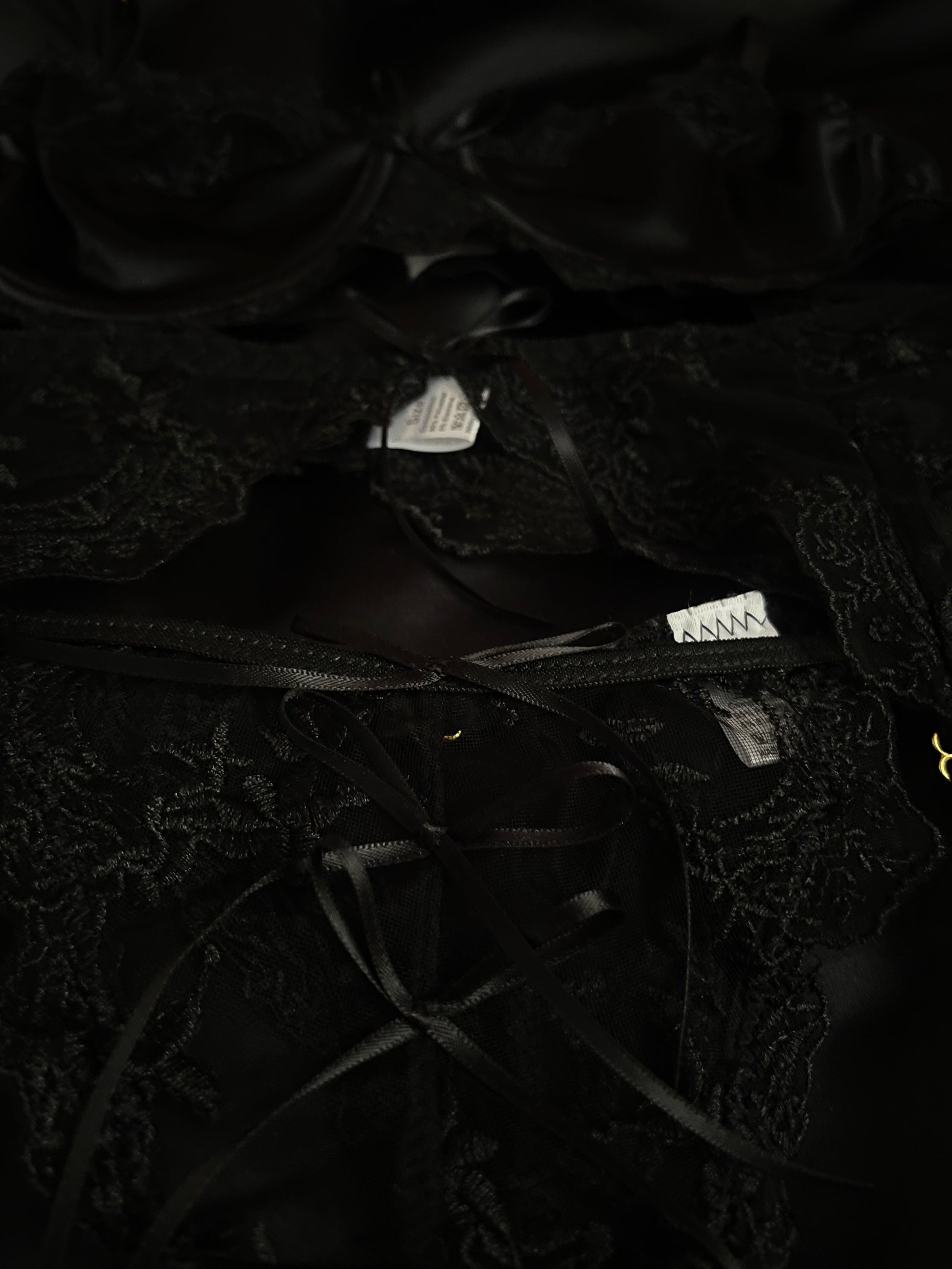 Conjunto de tres piezas estilo vintage. Lazo, Encajes y Satin.