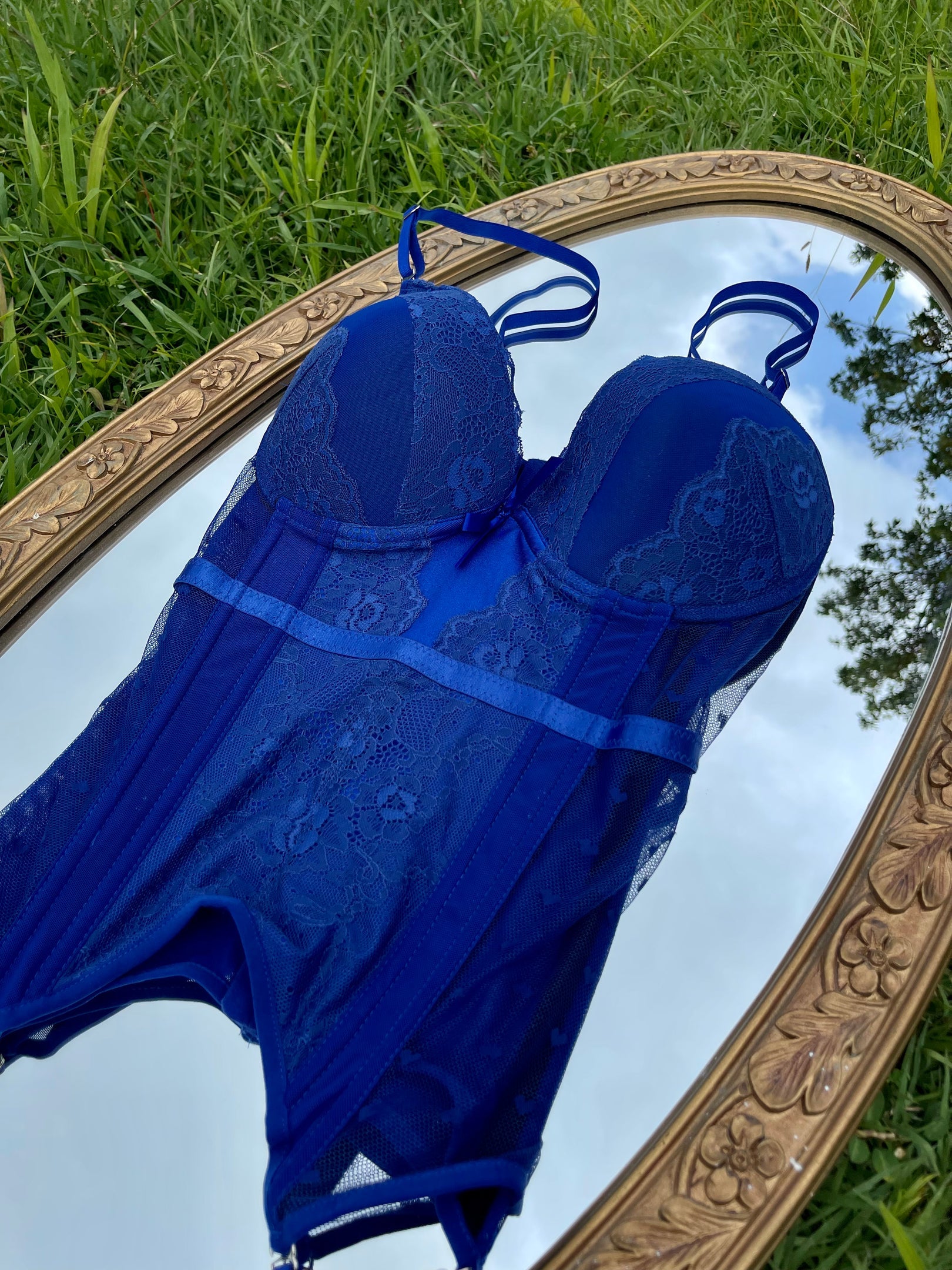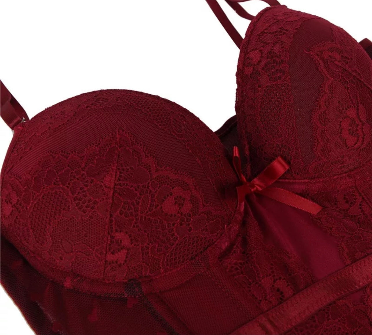 Set de dos piezas estilo corset con alambrado, copas fuertes con relleno.